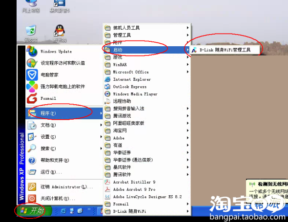 为了避免下次开机AP发射软件自动启动,请到电脑开始菜单-》程序-》启动-》删除里面的BLINK软随身WIFI管理工具。