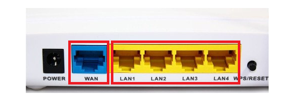方法二:直接观察路由器接口的颜色区分,Wan口和Lan口的接口颜色会截然不同,并且Wan口是唯一一个不同颜色的接口。(注意:不同型号的路由器,Wan口的位置及颜色会有所不同,具体根据实际情况区分即可)