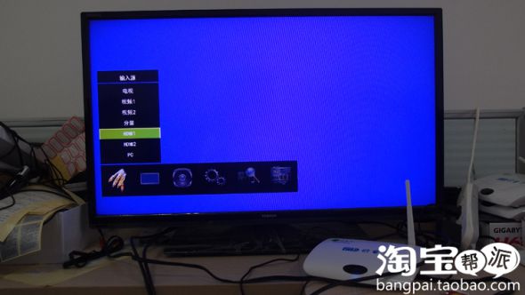 2、用HDMI线连接电视机,请把电视机切换到对应的HDMI通道;比如电视机上接线的接口标注为“HDMI 2”,按电视机的遥控器切换到“HDMI2”状态(如下图)