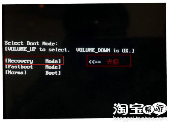 将光标移动到第一项[Recovery Mode] (用音量 键进行移动)然后按下“音量-键”。