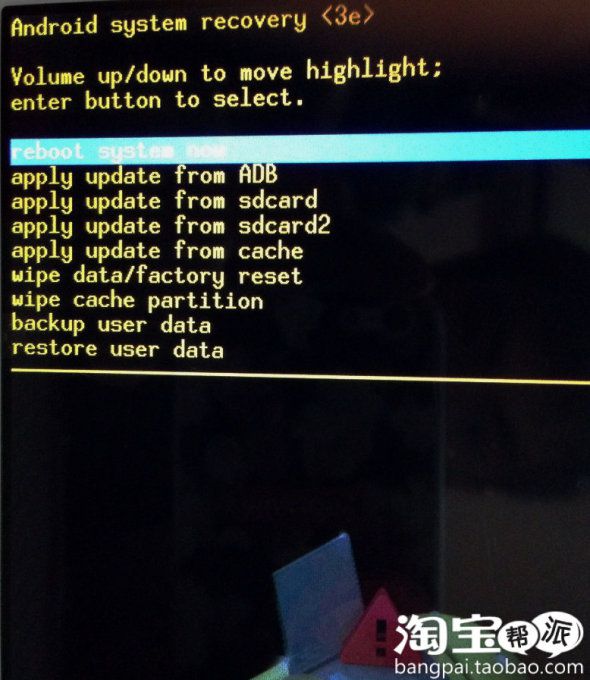 以上操作完成以后 会返回(图2)的界面直接选择第一项reboot system now ?按下音量 键确认。