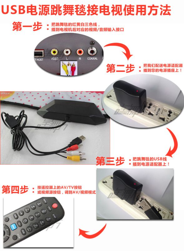 以下是普通老款跳舞毯,usb电源接电视使用!