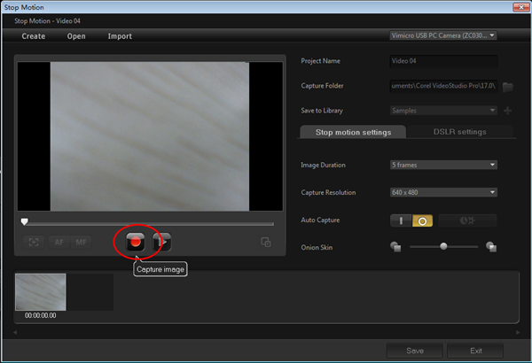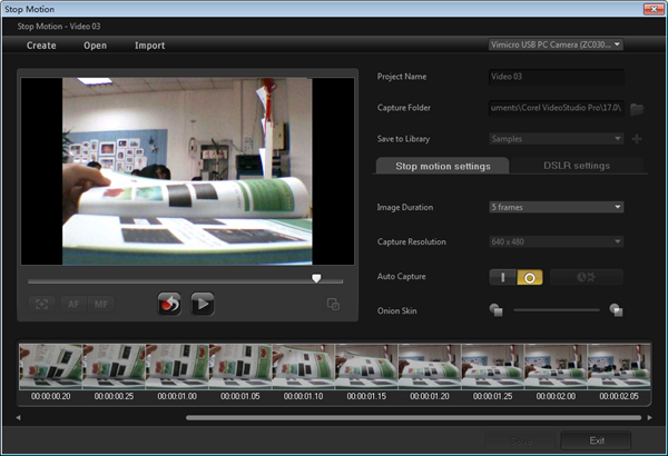 4、如小编准备制作一部“翻书”效果定格动画,只需不断点击“Capture image”按钮,将自己翻书过程中的重要画面一张张捕捉下来即可。