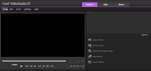 1、打开会声会影x7,点击“Capture”按钮,切换到“Capture”选项窗口,点击“Stop Motion”按钮,进入定格动画捕捉窗口;