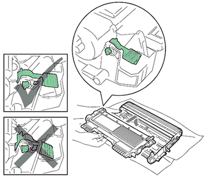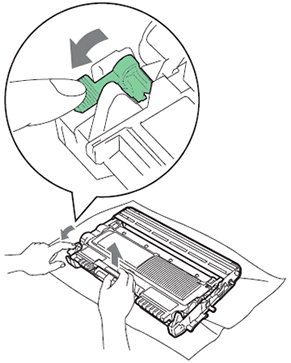 左右轻轻滑动绿色滑块数次,以清洁硒鼓单元内的电晕丝。