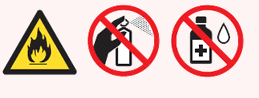 禁止使用含氨或酒精的清洁材料、任何类型的喷雾剂或易燃物品清洁设备的内部或外部,否则可能导致火灾或触电。