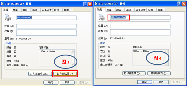 a)如上图4所示,将打印机名称改为BTP-transfer(注意:必须是这个准确的名称),再点击“确定”按钮。