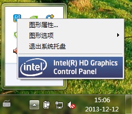 电脑桌面右下角托盘找到Intel显卡的图标,点击讲会打开设置界面。如下图: