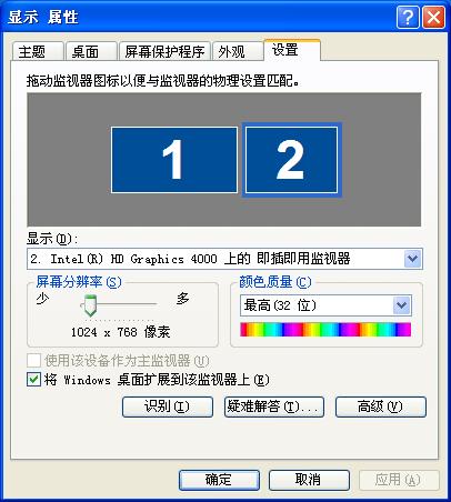 Windows XP 的发布于2001年,介时双屏输出的功能并不常用,所以XP的双屏切换稍微需要多些步骤。