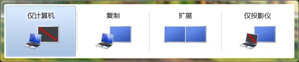 只需要按下按键WIN键 P键 即可,将会在显示器右侧弹出如下图窗口,直接鼠标选择或键盘方向键选择需要切换的方式回车即可。