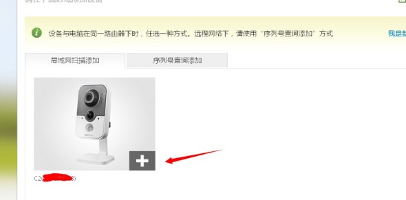 注意:在局域网扫描添加页面中点击添加摄像机(添加时,需要确保计算机与待添加摄像机或设备(DVR)连接在同一路由器下)。