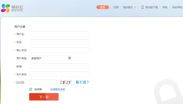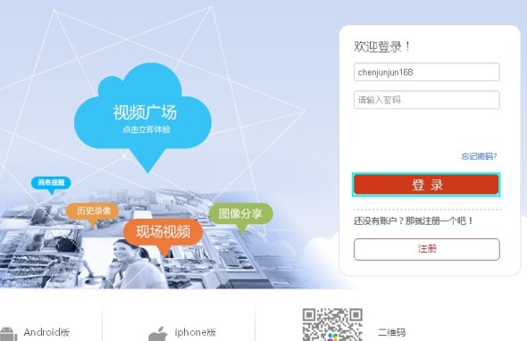在浏览器中输入网址 www.ys7.com,进入“萤石”登录界面,填写好正确的用户名和密码后,点击“登录”按钮。