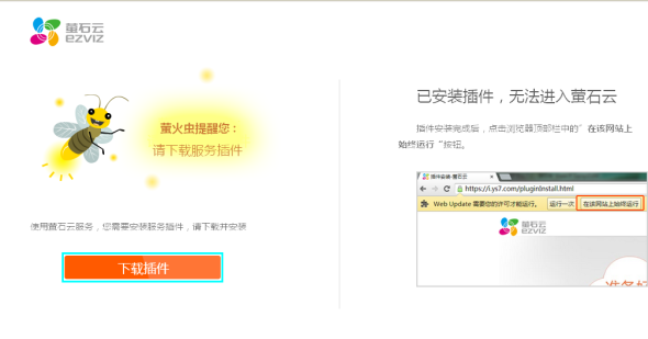 如果您第一次使用萤石或者您的插件版本不是最新的,系统会提示您下载插件,下载完成后进行插件的安装。