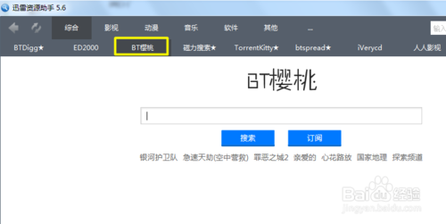 当然,以上方法只是利用“btspread”网站来搜索番号视频,我们也可以利用其它网站来搜索更多有关番号的视频,如图,只需要切换到对应的选项卡即可开始搜索。