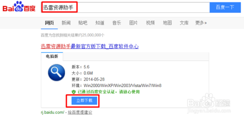 番号下载器的获取:直接在百度中搜索“迅雷资源助手”,从搜索结果列表中即可看到程序的下载地址。