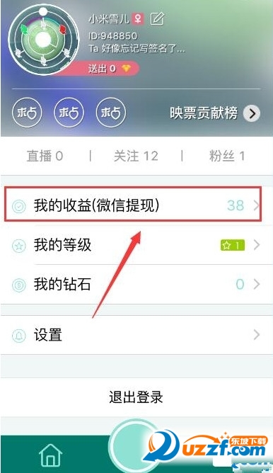 当我们赚到一定的映票后,用户可以到我的个人页面中,点击我的收益