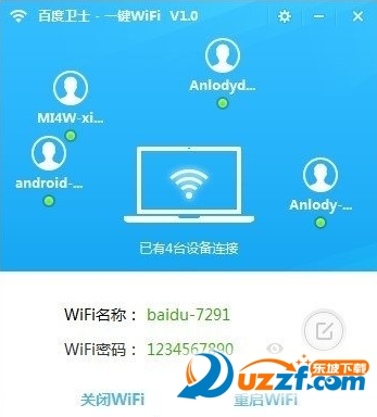 点击下方“关闭WiFi”和“重启WiFi”即可对一键WiFi进行关闭和重启操作。