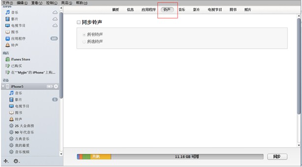 第七步:选择我的iPhone – 顶部菜单 - 选择铃声