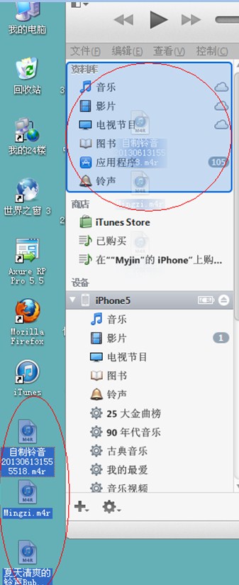 第六步:将桌面上的M4R文件拖拽到itunes资料库中