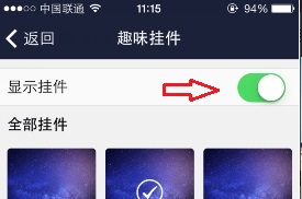3、然后我们就可以看到一些供我们选择的挂件,想要使用挂件,一定要保证上方“显示挂件”后面的滑动开关是打开的。然后选中的挂件会有“√”表示,想更换挂件,只需要点击相应的挂件即可;