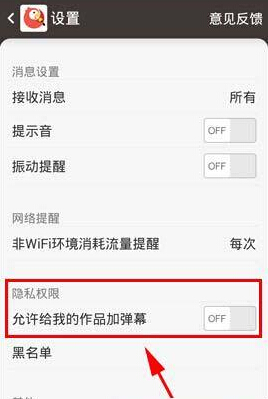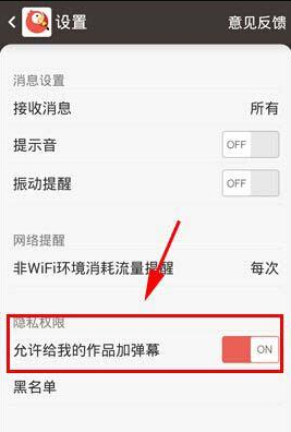 然后找到隐私权限,将“允许给我的作品加弹幕”后面的ON调成OFF就OK啦!怎么样?是不是很简单呢?