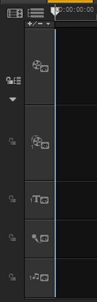 这个是界面里左下的几个轨道,依次是视频轨、覆叠轨、标题轨、声音轨、音乐轨