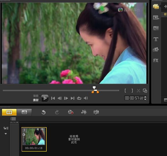 视频轨素材那里显示01:18,表示我们选取出来的素材是1S18帧