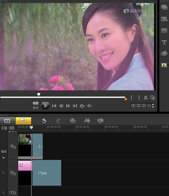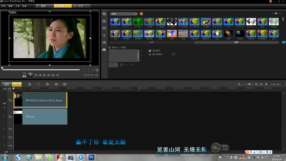 拖到覆叠轨里按照楼上的方法自己设置,最后加了框子后的效果如下