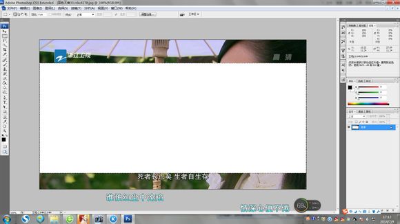 用矩形选择工具选好区域,一般是LOGO下一点然后字幕上一点