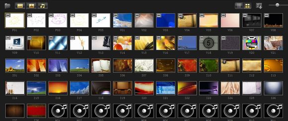 这个是右边的素材存放区,可以通过点击此图左上角的文件夹图标拖入素材,拖进去了之后就可以显示在右边了(打开按钮的旁边依次是视频、图片、音频,单击哪个那对应的素材就会隐藏了)