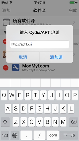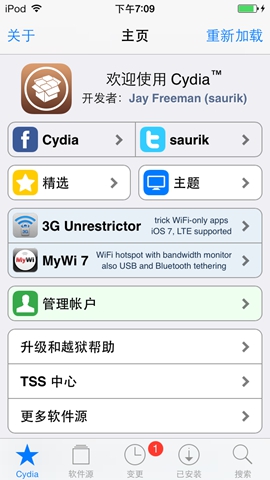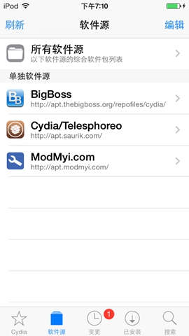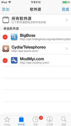 2.等待加载完成后,点击 Cydia 下面的 软件源 。