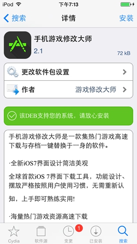 6.点击搜索结果中的 手机游戏修改大师 进入软件的详细页,然后依次点击右上角的 安装 和 确认 。