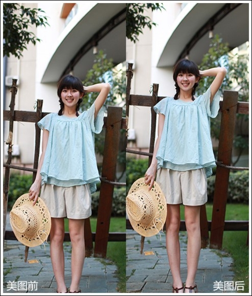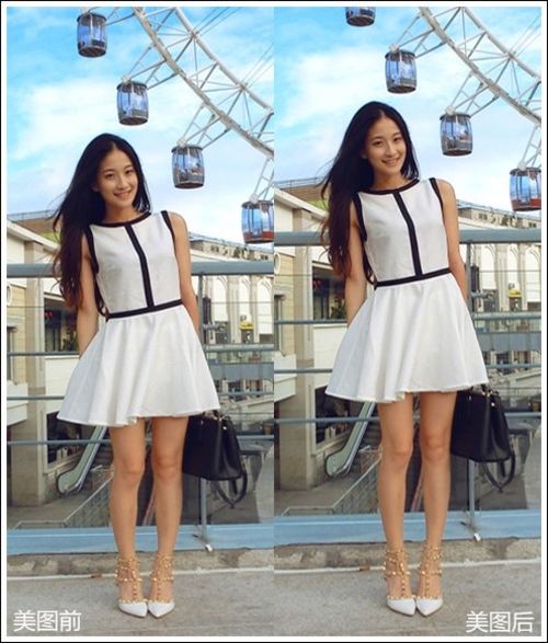下面是小编用MM的照片,做了“增高”腿部拉长术,前后对比有图有真相,欣赏后不要忘记给自己尝试一下哦:
