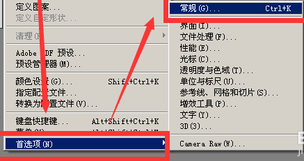 2.选择编辑 --首选项下的子菜单 常规 选项。