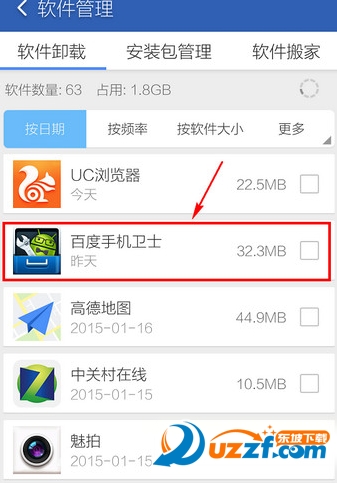 找到百度手机卫士,并勾选