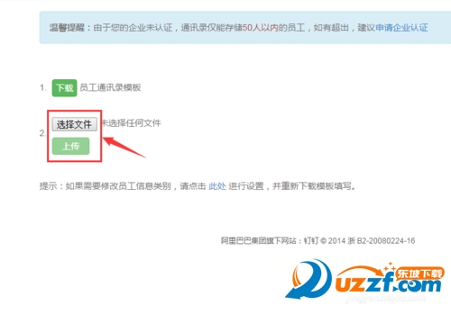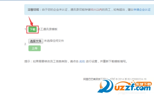 首先,我们需要下载网页上的通讯录模板,将员工的信息导入即可,点击“下载”选项,会得到一个Excel文件格式的通讯录模板。