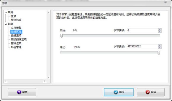 扫描区域:对于非常大的磁盘来说,限制扫描磁盘的一定区域是有用的,这将加快扫描的速度并减少发现的文件数。。