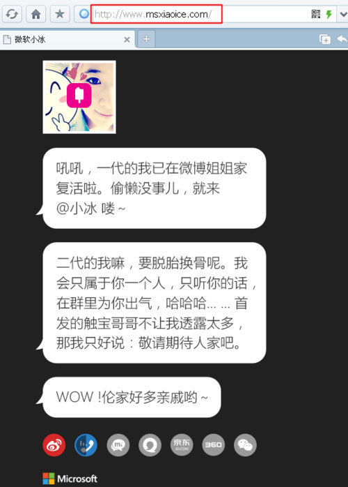 由于微软小冰一代在微信上受到了很多用户的喜欢,后来由于总总原因被微信封杀,随后微软宣布小冰暂时停运,经过和多方平台合微软近期微软宣布“小冰二代”已经复活并在新浪微博安家开始和微博用户互动,将会在48小时内开放“微软小冰二代”供用户领养属于自己的小冰。