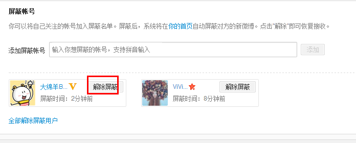 一、新浪微博怎么取消屏蔽