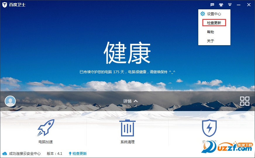 方法一,您可以点击百度卫士主界面底部的“检查更新”,查看是否有版本更新。