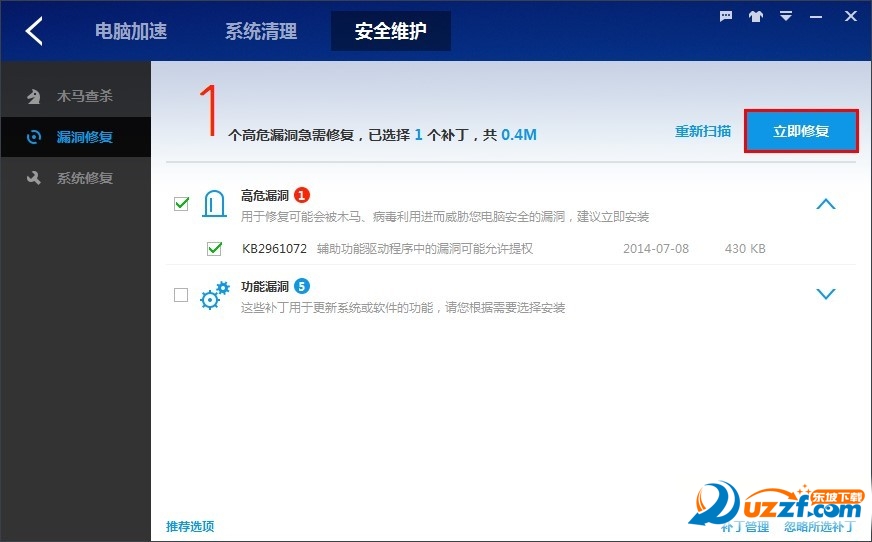 使用百度卫士的朋友你知道怎么才可以请修复自己的电脑上面的漏洞吗?现在还是不知道怎么去修复的朋友,现在就可以来本站看看这篇百度卫士修复漏洞方法!