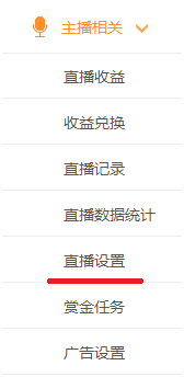 3、进入个人中心后,在左边的一栏中选择主播相关。