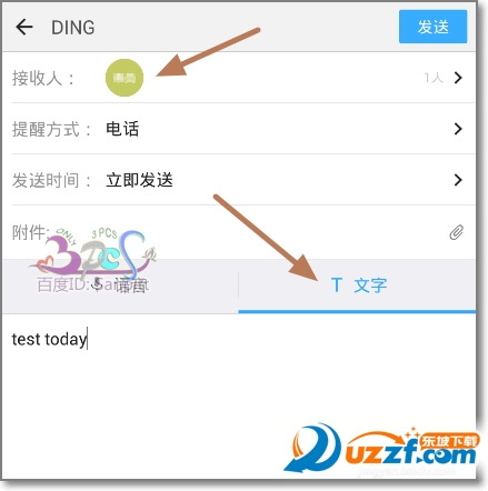 选择发送对象和内容, 同时还能添加电话提醒功能。