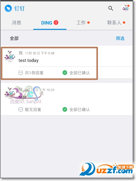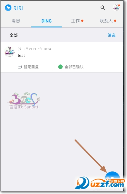 发布一条Ding消息。在钉钉的DING界面,点击钉图标。