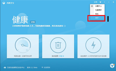 打开卫士,单击右上角的“反馈”,或者选择菜单下的 “关于”,可进入到卫士官网,详见截图