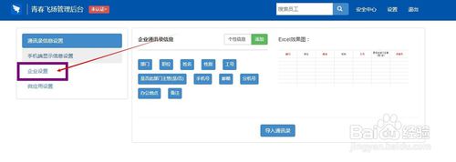 点击右上角的“设置”,进入后点击左侧的“企业信息设置”