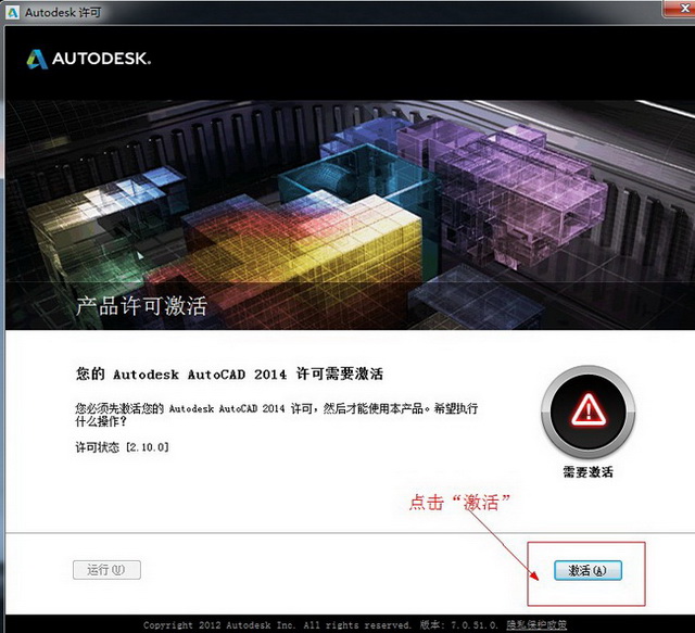 第十二步:开始激活CAD2014(选择“激活”即可)