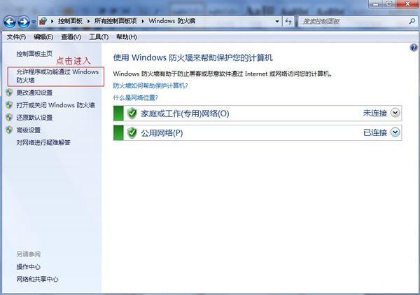 3、点击“允许程序或功能通过防火墙”