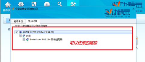 最后一步,既然备份了驱动那么就需要还原驱动,同样在百宝箱中还有还原驱动,我们点击还原驱动选择相应的驱动就可以还原成功。