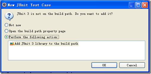 如果第一次建测试类,它要求加入JUnit的jar包,点OK即行。如下图: